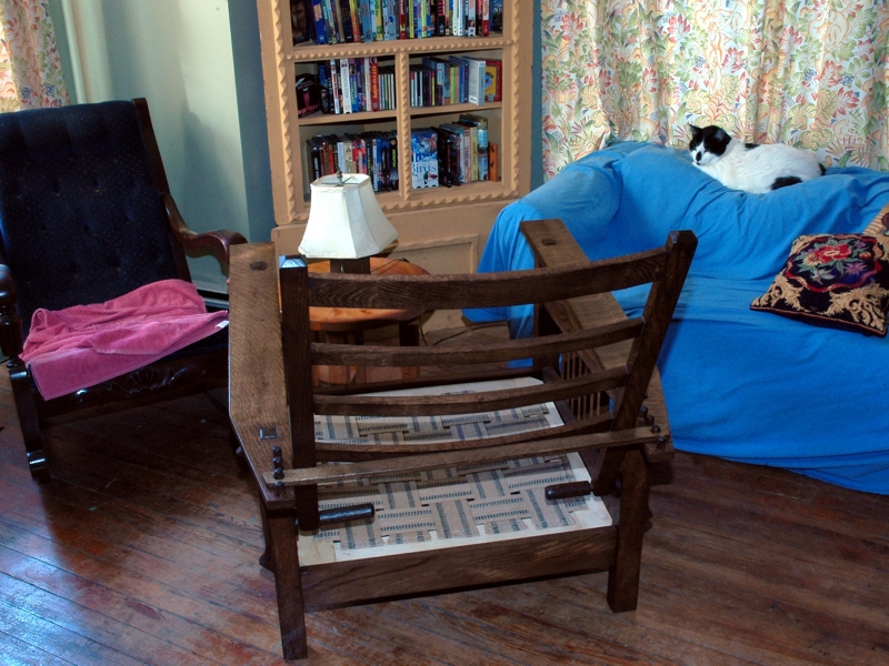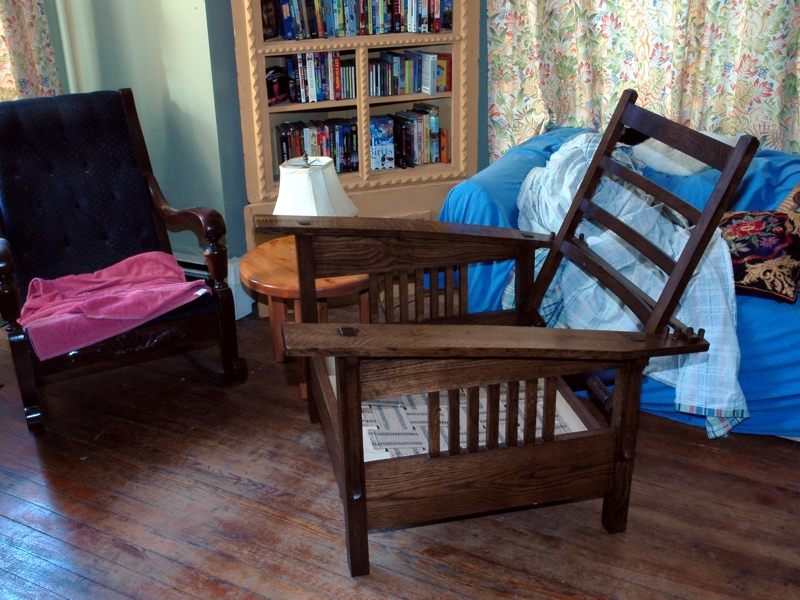 I installed a new tongue-in-groove oak floor over a 3/4 -nch plywood sub floor. I put 15-pound felt paper between the sub floor and the finished floor to minimize the possibility of squeeking. I created new baseboard molding and a shoe molding. The entire floor was sanded and finished with three coates of polyurethane.
